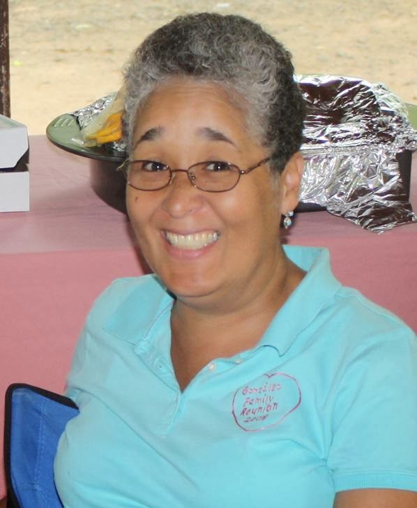 Characteristics: Latina female with graying salt and pepper hair and brown eyes. She has birthmarks on her left arm and right cheek. She wears glasses and her ears are pierced. She takes medication for epilepsy.